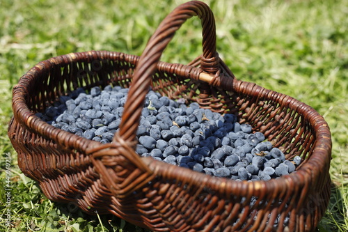 Jagoda kamczacka w koszu wiklinowym na trawie