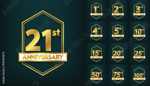 Realistic Golden anniversary premium set Vector Design