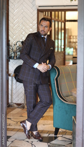 Włoski styl. Marynarka dwurzędowa i loafersy.