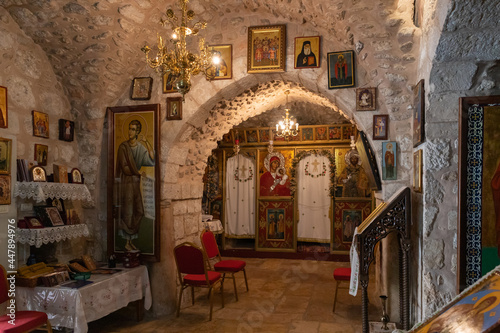 The interior of the Sandanai Monastery in Christian quarters in the old city of Jerusalem, Israel