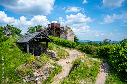 Wooden lookout platform on Kumburk Castle Ruins near Nova Paka, Czech Republic