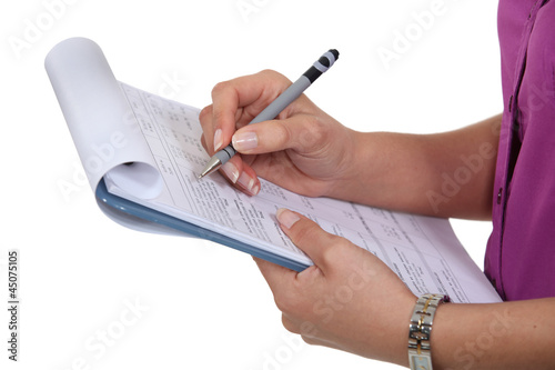 Woman filling in a form