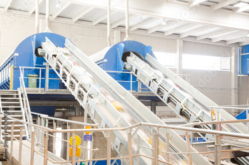 Recycled material on conveyor belt in recycling center