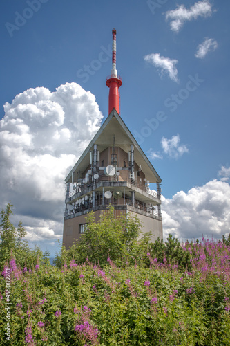 TV transmitter on top of a hill on a cloudy day