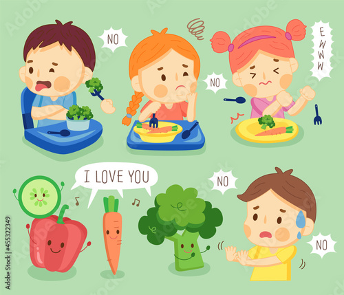 set kids do not like vegetable. children hate vegetables.