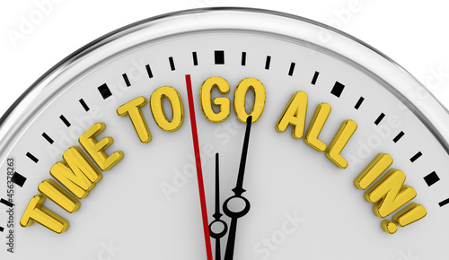 Time to Go All In Clock Deadline Decide Total Commitment 3d Illustration