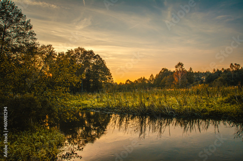 510 / 5000 Wyniki tłumaczenia Autumn landscape illuminated by the setting sun.