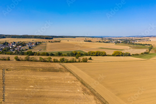 ird's eye view of harvested fields in the Taunus / Germany in autumn