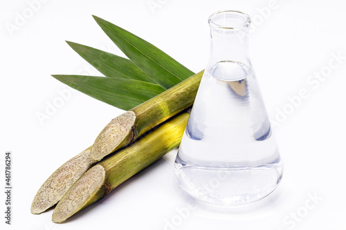Brazilian ethanol biofuel, made with sugar cane, alternative fuel isolated white background.