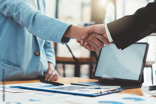 Businessman handshake for teamwork of business merger and acquisition,successful negotiate,hand shake,two businessman shake hand with partner to celebration partnership and business deal concept