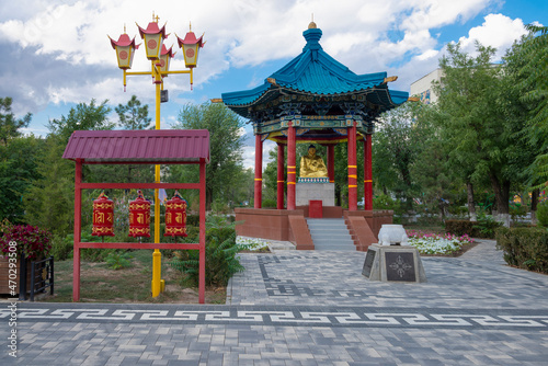 Rotunda and statue of Shakyamuni Buddha. Elista, Kalmykia