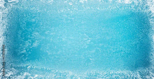 Frost patterns on frozen winter window as a symbol of Christmas wonder. Christmas or New year background.