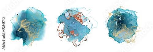 Alcohol ink abstract shape Gold and blue texture