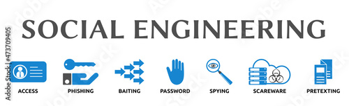 Banner zum Thema: "Social Engineering". Isoliert freigestellt vor weißem Hintergrund.
