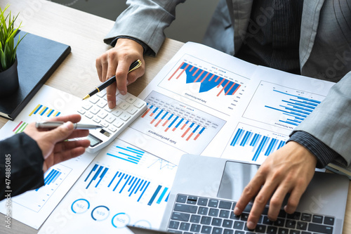 Analyzing results, Businessman accountant or financial expert analyze business report graph and finance chart at the corporate office. Concept of finance economy, banking business, and stock market