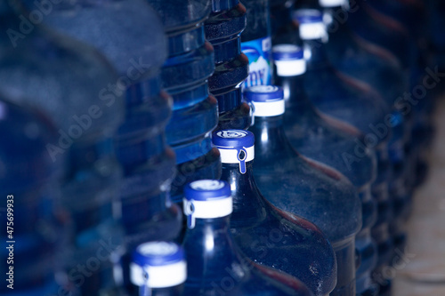 Pile of gallons of aqua mineral water