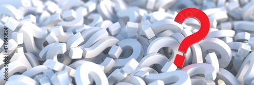 Red question mark on white color questionmarks pile background. FAQ concept. 3d illustration