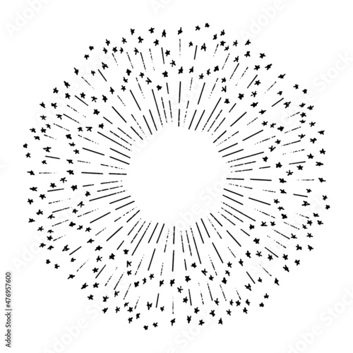 Light rays sunburst, hand drawn retro Sunbeam, grunge explosion element. Vintage linear radial design frame.