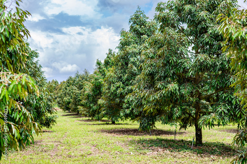 Fresh durian tree beautiful garden with nice sky, best quality product food in Chanthaburi, Thailand for export