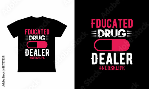 Fducated Drug Dealer Nurse life t-shirt and poster vector design template. Nursing t-shirt with medical elements vector. Motivational quote.