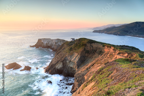 Winter sunset over Marin Headlands near Battery Mendell and Rodeo Beach. Sausalito, Marin County, California, USA.