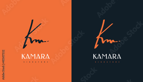 KM Signature Initial Logo Design with Gold Handwriting Style. KM Signature Logo or Symbol for Wedding, Fashion, Jewelry, Boutique, Botanical, Floral and Business Identity