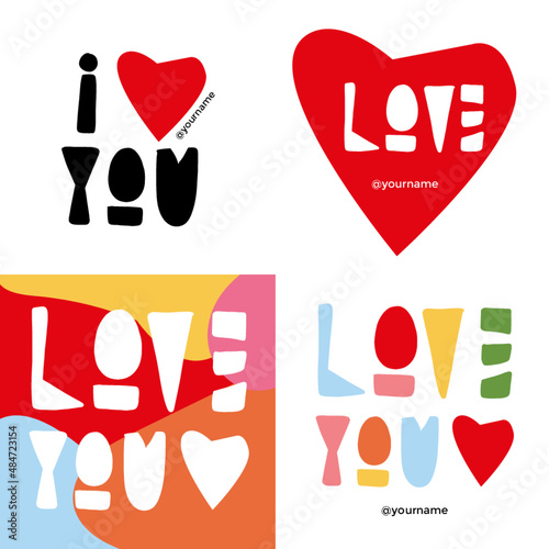 Arty i love you with heart, cartel artistico de colores con corazón, san valentín, dia de los enamorados, 14 de febrero.