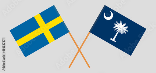Crossed flags of Sweden and The State of South Carolina. Official colors. Correct proportion