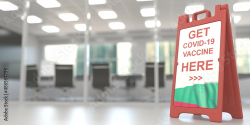 Flag of Bulgaria on a COVID-19 vaccination centre signboard, 3D rendering