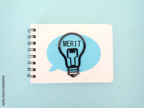 ノートにMERITメリットの単語と電球
