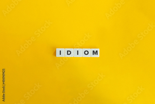 Idiom Word on Letter tiles on bright orange background. Minimal aesthetics.