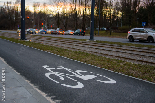 Bicycle road sign on asphalt. Ciąg pieszo-rowerowy.