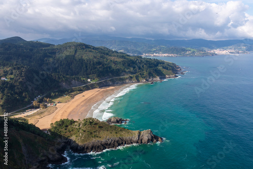laga beach in the urdaibai biosphere reserve from a nearby mountain
