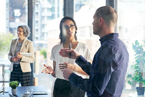 Mastering the art of communication. Shot of businesspeople having a discussion in an office.