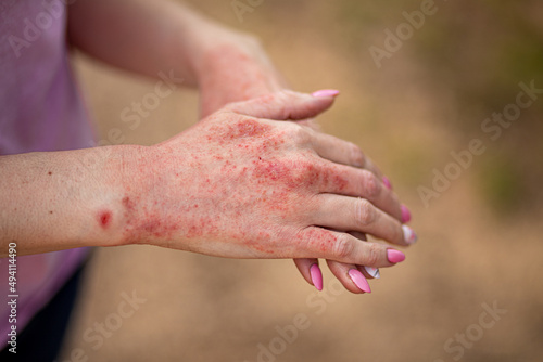 Close up dermatitis on skin, ill allergic rash eczema skin of patient , atopic dermatitis symptom skin detail texture , Fungus of skin ,The concept dermatology, treatment fungal