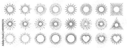 Sunburst, explosion effects, vintage doodle isolated on white background