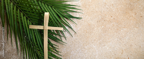 Palm cross and palm leaves. Palm sunday and easter day concept.