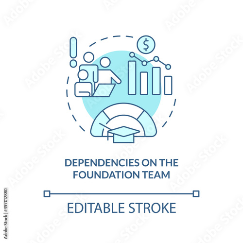Dependencies on foundation team turquoise concept icon. Strategic problem of business abstract idea thin line illustration. Isolated outline drawing. Editable stroke. Arial, Myriad Pro-Bold fonts used