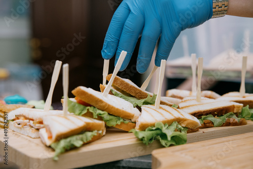 Sandwich with ham, cheese, tomatoes, lettuce and toasted bread.