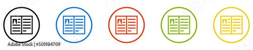 Bunter Banner mit 5 farbigen Icons: Bewerbung, Lebenslauf oder Personalakte