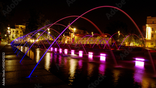 Beautiful view of the fountain in Litewski Square in Lublin, Poland, captured at night