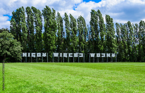Inscription "NIGDY WIĘCEJ WOJNY" (war: never again), Westerplatte, Gdańsk, Poland