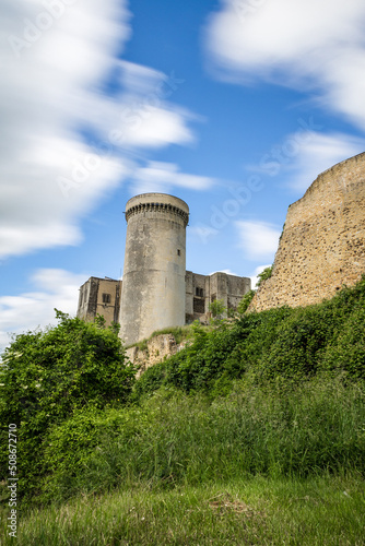 Vue en longue exposition par temps nuageux du Château de Guillaume-le-Conquérant à Falaise