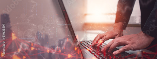 Concept data science analytics business Intelligence or BI, businessman using laptop computer,marketing deep learning AI,technology profit analytic,online marketing information digital report solution