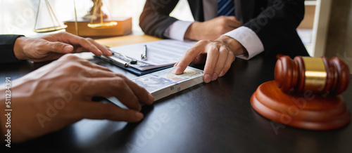 lawyer or judge is taking a bribe. In the client's courtroom at the lawyer's office In order to bribe to gain an advantage in the form of lawsuits, the concept of bribery and corruption in law