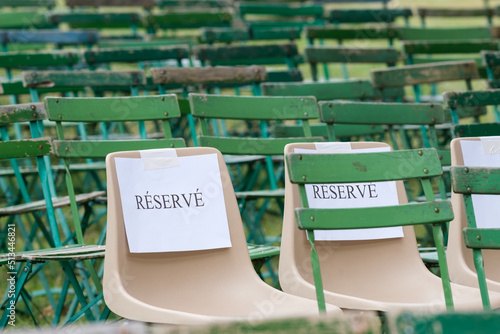 Des chaises résevées pour des vip lors d'un concert ou spectacle