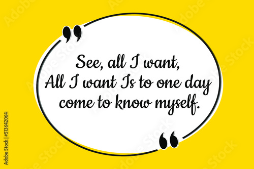 Vector quote. See, all I want, All I want Is to one day come to know myself.