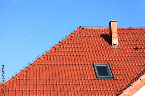 Dach nowy, współczesny z czerwonej dachówki.
