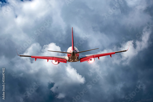 Jet flight in a dark stormy sky