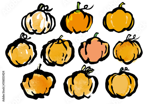かぼちゃ 和風 墨絵 水彩風イラストセット